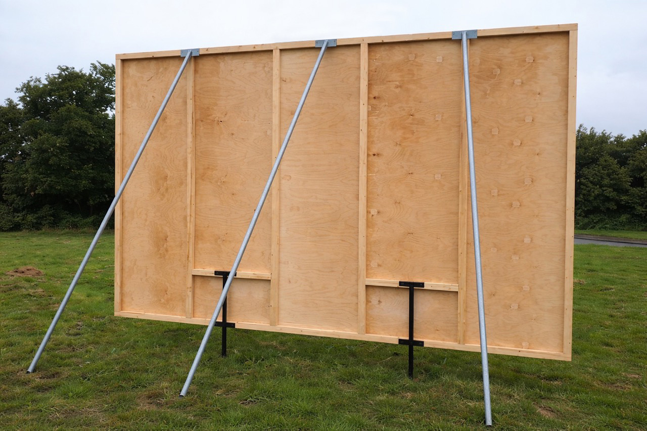 Die stabile Bauweise aus 9 mm Multiplexplatten in Kombination mit einem verstärkenden Dachlattenrahmen sorgt für eine hohe Stabilität und macht den Plakatständer zuverlässig einsetzbar – auch bei wechselnden Witterungsbedingungen.